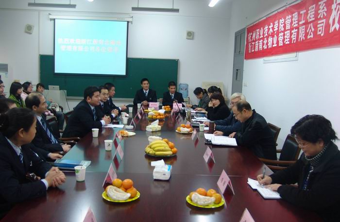 11月12日,物管公司与杭职院管理工程系校企合作启动仪式,在杭职院第二教学楼举行,物管公司与杭职院工程管理系互换授牌。物管公司领导及相关部门负责人,杭职院院、系相关领导、老师及部分物业管理专业的学生也一同参加仪式。 (方涛)