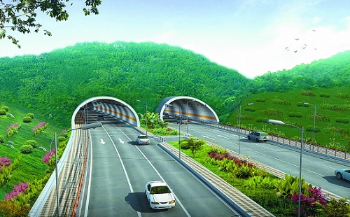 隧道为双洞双向六车道,单洞宽约15米,比一般隧道宽6米。单洞内设三车道,设计时速80公里;还有一条宽约2.5米的检修通道,可通非机动车和行人。