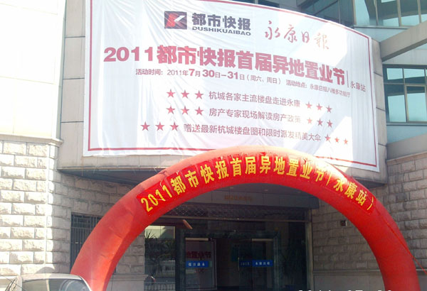 为积极应对楼市新政调控下消费者浓厚的观望情绪,新宸宜公司选择了“走出去、请进来”相结合的方式进行异地推广。7月29日,钱江国际广场二期项目参加了由《都市快报》组织发起的首届异地置业节永康站为期二天的巡展。