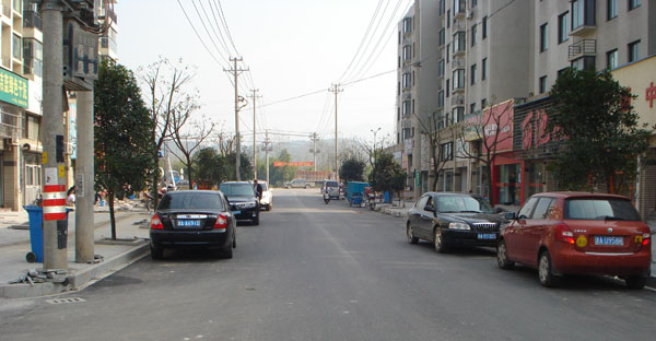 自从双溪天城交付后,业主经常反映该问题,物管处也多次向新登镇政府进行情况汇报。虽然镇政府每年都进行路面维修,但一旦载重车行驶过后,路面又恢复成“老样子”。今年初,经富阳电视台报道后,该问题引起社会各界关注,镇政府着手布置了东安路的全面改造工作。2011年8月初开始,东安路进行了路基、地下管网、路面的全面改造,现已基本完成。建成后的道路宽18米,两边人行道及绿化重新铺设,整洁大方,并实现初步通车。