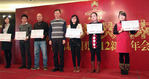 本次新春年会首次将评奖机制引进节目表演中。由7位集团公司领导和2名工会会员代表组成的评审团,从原创性、思想性、艺术感染力、舞台效果等标准对参与演出的14个节目进行了综合评分。最终,欣北公司的《歌曲串烧》、青枫公司的《魔术》、成本管理部徐文晓的独唱《天堂》分获三等奖;审计部、资产经营部、工程管理中心联袂表演的歌舞《新南北好》和营销管理中心表演的歌舞《让我们荡起双桨》分获二等奖,办公室和资产经营部表演的小品《非诚勿扰》获一等奖。集团公司执行总裁、工会主席许尚志为获奖节目的代表进行了颁奖。