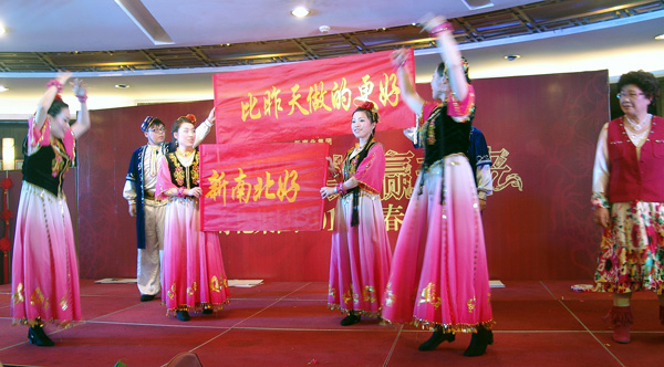 岁末回望过去,岁首企盼未来。2012年1月20日下午,杭州梅苑宾馆多功能厅内灯光璀璨,笑语阵阵,一派喜气洋洋的节日气氛。新南北集团2012年新春年会在这里隆重举行,集团公司及外派人员、青枫公司、欣北公司、康信公司员工共150余人欢聚一堂,共庆美好时光,共话美好未来。