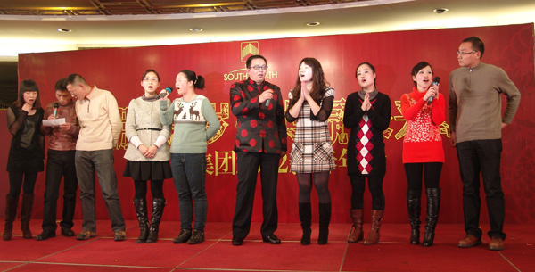 在由第二届青年管理人员培训班学员代表合唱的一曲《明天会更好》中,历时三个半小时的新南北集团新春年会圆满落下帷幕。在聚餐开始前,陈烟土总裁发表了讲话,他首先感谢了员工们一年来的辛苦工作,并祝愿大家在新的一年里工作顺利,身体健康。接下来,全体人员欢聚在一起,共话一年的工作收获,展望新年的精彩纷呈。