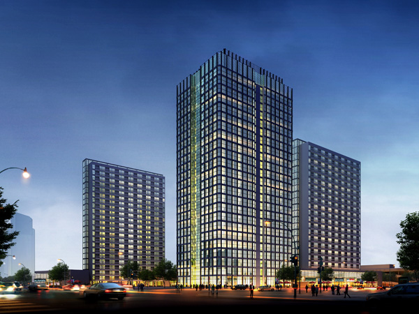 杭州康信置业有限公司开发的余政储出〔2011〕37号地块项目位于杭州市余杭区良渚街道,东至巨州路、西至冯家浜路、北至规划金昌路、南至通运路,总用地面积为59250平方米,总建筑面积190861平方米。根据杭州市城市定位和良渚组团的发展思路,结合周边地块发展状况,本项目定位为商业、办公和汽车专卖店相结合的建筑形态。通过集聚汽车整车贸易和售后服务为中心的4S店等相关汽车物流企业,延伸石祥路汽车品牌街的特色功能,为此区域已有的汽车专卖店营造更好的商业氛围。该项目中错落有致的4幢22至23层的办公建筑不仅将提高此区域的配套服务功能,其精致的建筑形态也将成为提高城市品位的一个亮点。