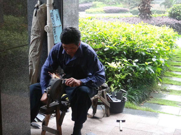 居住在16幢的胡女士特别跑回家将家中大大小小的剪刀都带了过来。在磨刀师傅的耐心磨制下,很快几把已经生锈的剪刀又重焕“光彩”,让胡女士高兴不已,“家里的剪刀已经绣了好久,以前因为找不到磨刀师傅,总是绣了就买,这些就是多年累积下来的。这次社区和物业搞的便民服务,太对我胃口,以后我再不用愁去哪找磨刀师傅了!”