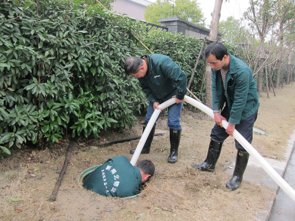 奋勇疏通污水管 真诚服务每一天