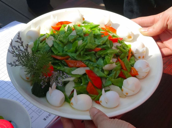 比赛中,20位大姐各显身手,完成的菜肴均可谓“色、香、味、意、型”俱佳,让评委们很难评判高下。最终一道以鹌鹑蛋制成小白兔的菜肴在造型上占了优势;观众品尝环节时,则是一盆亮晶晶的红烧肉最受欢迎。虽然当天阳光强烈、天气较热,但前来观赛的居民络绎不绝,纷纷对桌子上的菜肴进行观赏、点评。比赛结束后,社区邀请在场观众品尝菜肴,20盆菜均很受欢迎。活动最后,工作人员还向观众们分发小礼品,现场气氛非常热烈。