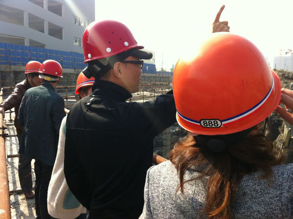 到达现场后,蒋可扬总经理首先就项目进度、工程进展、工程工序等环节向各部门员工作了介绍。公司总经理助理王跃进不仅到地下二层地面进行查看,还亲自体验部分工种的工作内容,体会了建筑工人的辛苦。各部门员工又根据自身所掌握的信息提出了不同的问题,蒋可扬总经理一一作了回答,解决员工心目中的疑问。经过更直观的现场观摩后,公司员工纷纷表示:综合办、财务部等部门由于主要办公地点在办公室中,对项目现场情况了解并不多,销售部员工即使到现场察看但也对具体情况缺乏了解,通过这次交流学习,使员工们能更充分地熟悉了项目的工程情况。