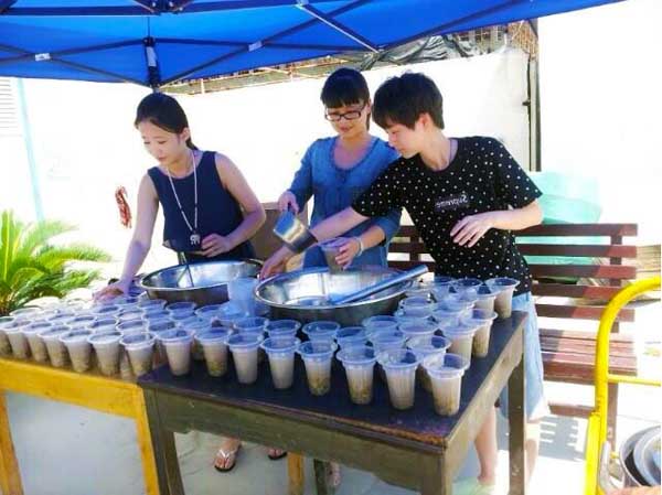 当天上午,康信公司就准备好了足够的绿豆汤、毛巾等慰问品。大约10点左右,民工兄弟的分批用餐时间快到了,大家就开始在“南北•盛德国际商务中心”工地食堂门口忙碌起来,同事们有的拿毛巾、有的盛汤的、有的递慰问品……活动结束后,大家一致认为虽身在烈日下,但能为在酷热环境中工作的民工兄弟送上一碗清甜的绿豆汤,这点辛苦实在微不足道。