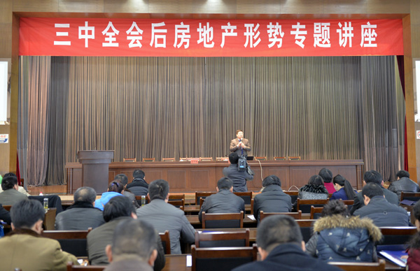 本次签约活动与“三中全会后房地产形势报告会”共同举办,邀请了北京师范大学房地产研究中心主任、民革中央委员、住建部专家委员会委员董藩教授权威解读。董教授围绕三中全会后房地产形势这一主题,深入阐述了房地产产业面临的巨大压力、目前调控政策特点、房地产产业的前景和推动因素,权威解析了党的十八届三中全会《决定》中有关房地产的政策说法。会后,浙江省清华总裁促进会成员还现场考察了盛德国际广场项目。盛德国际广场项目总建筑面积达19万余平方米,由2幢20~22层的双子楼、1幢25层的开元名都五星级大酒店为主体,另有1幢5层的商业综合体。