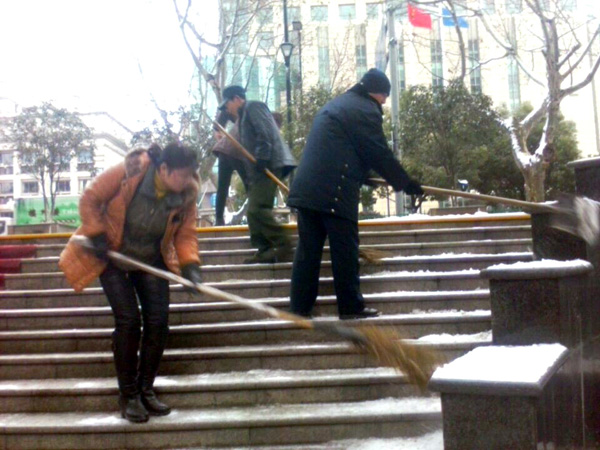 南北商务港服务中心为了让业主更好地感受到“真诚服务每一天”的宗旨,也一大早就投入到了扫雪的战役中,希望在业主上班前将大厦的出行安全隐患降至最低。严寒的天气下,员工们的手和脸都被冻的通红,但这一切丝毫没有影响到大家的工作热情,他们发扬了吃苦耐劳、努力拼搏的战斗精神,终于将积雪清扫干净,得到了业主的肯定和赞许。