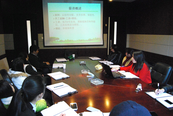 近期,杭州青枫房地产开发有限公司在青枫墅园会所三楼会议室组织召开了新晋员工管理制度培训会议。培训会由青枫公司办公室主任陈英主持讲解。来自公司工程部、销售部、财务部、办公室、前期部等10名新晋员工参加了本次培训。