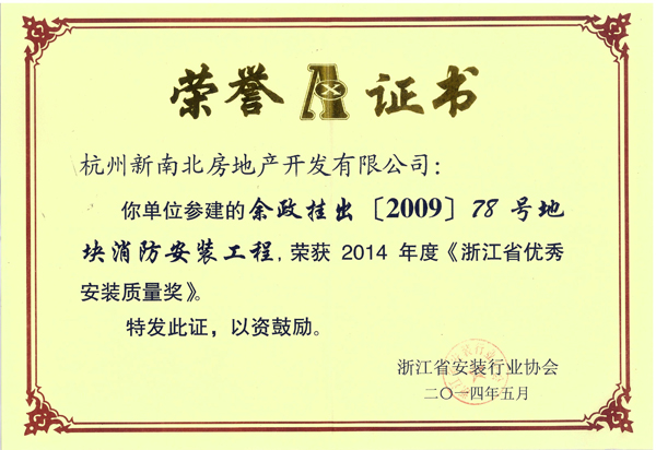 南北·乐章项目荣获2014年度“浙江省优秀安装质量奖”