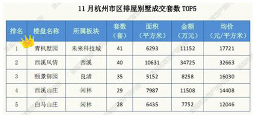 鹭语别墅蝉联11月杭州排屋别墅销售冠军