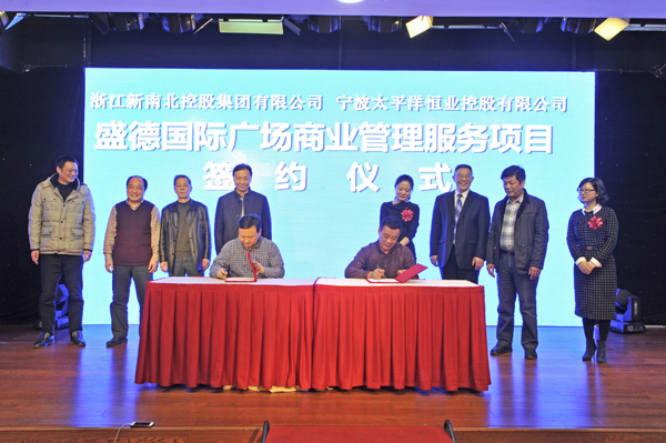 2月5日,宁波太平洋百货入驻盛德国际广场签约仪式在宁波宁海太平洋集团总部隆重举行,集团总裁、建德新南北置业有限公司董事长陈烟土,宁波太平洋百货集团公司董事长胡敏杰分别代表各自所在的公司,在新南北·盛德国际广场购物中心商业服务合同上签字,这预示今后盛德国际广场将由宁波太平洋百货集团负责招商、开业与前期筹备及开业后的运营管理。