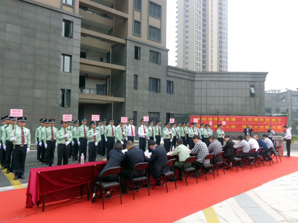 为提高物业公司员工消防安全意识,检验员工在火灾发生时的应急疏散、安全逃生及灭火救援能力,浙江新南北物业管理有限公司于10月23日下午,在公司所辖项目三宝郡庭物业服务中心举办消防技能比赛。本次消防技能比赛由拱墅区米市巷街道总工会主办,浙江新南北物业管理有限公司工会承办。同时还特别邀请了拱墅消防大队、祥符派出所、城中村改造指挥部、勤丰社区、三宝、李家桥经联社等相关单位共同参与。