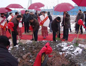 本报讯 1月30日上午,钱江国际广场工地现场瑞雪纷飞,彩球飘舞。10点58分,开工奠基典礼正式举行。集团公司总裁陈烟土,部室以上负责人,杭州市开发投资有限公司领导、杭州建工集团领导等莅临参加。市政府副秘书长许保金、钱江经济开发区副主任夏积亮等领导,及开发区入园企业和相关合作单位到场表示祝贺。